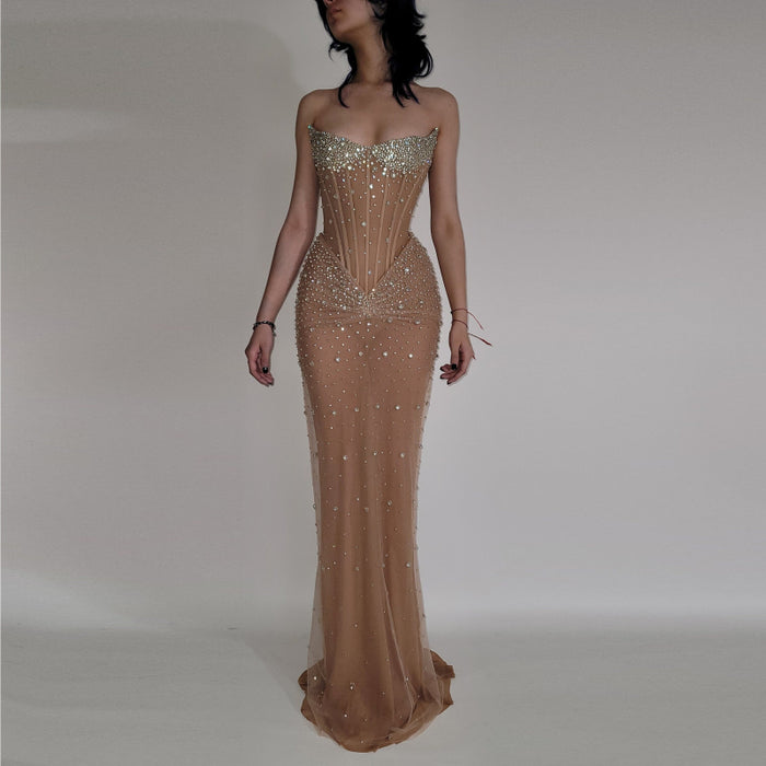 Make an unforgettable entrance in this luxurious mermaid crystal beaded prom dress—a masterpiece of hand embroidery and couture-level detailing. Designed for the woman who demands nothing less than extraordinary, this gown transforms any special occasion into your personal runway moment.