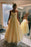 Marvelous Glorious Attractive Yellow Puffy Spaghetti Straps Floor Length Prom with Appliques Long Evening Dress
