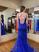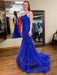 Mermaid Backless Blue Lace Long Prom Dresses, Mermaid Blue Formal Dresses, Blue Lace Evening Dresses