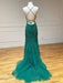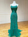 Mermaid Backless Green Lace Long Prom, Mermaid Green Formal, Green Lace Evening