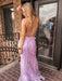 Mermaid Backless Lilac Lace Appliqued Long Prom Dresses, Purple Lace Formal Graduation Evening Dresses