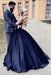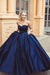 Navy Blue Ball Sweetheart Dress Princess Satin Strapless Long Prom Gown
