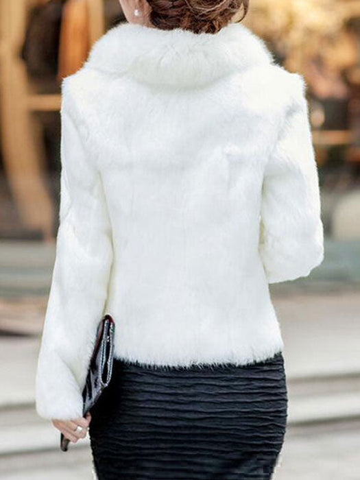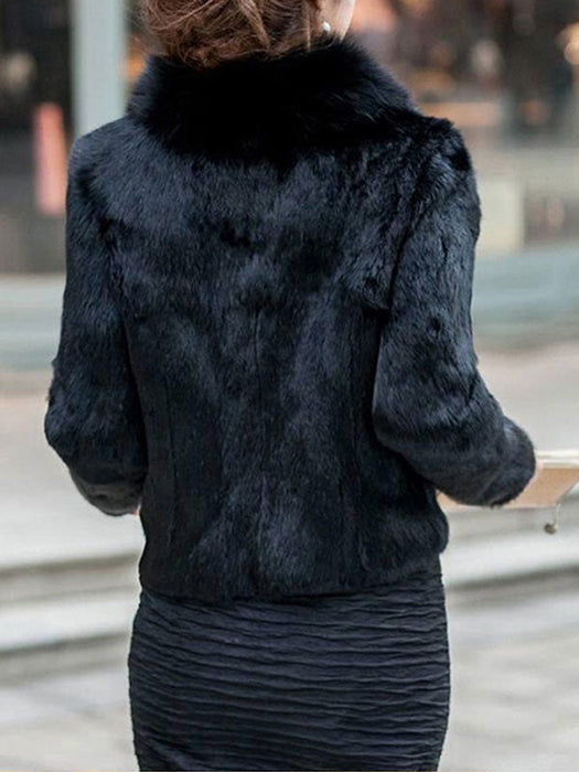 New Faux Fur Coats For Women Long Sleeves V-Neck Black Casual Winter Coat