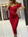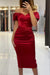 Off the Shoulder Tea Length Burgundy Prom, Wine Red Tea Length Satin Formal Evening Homecoming