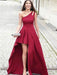 One Shoulder High Low Burgundy Long Prom Dresses, High Low Burgundy Formal Dresses, Maroon Evening Dresses