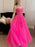 Open Back Hot Pink Tulle Lace Long Prom Dresses, Hot Pink Lace Formal Graduation Evening Dresses