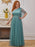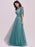 Prom Dress Cyan Blue Polyester One-Shoulder A-Line Sleeveless Backless Maxi Party Dresses