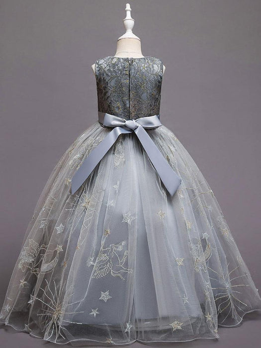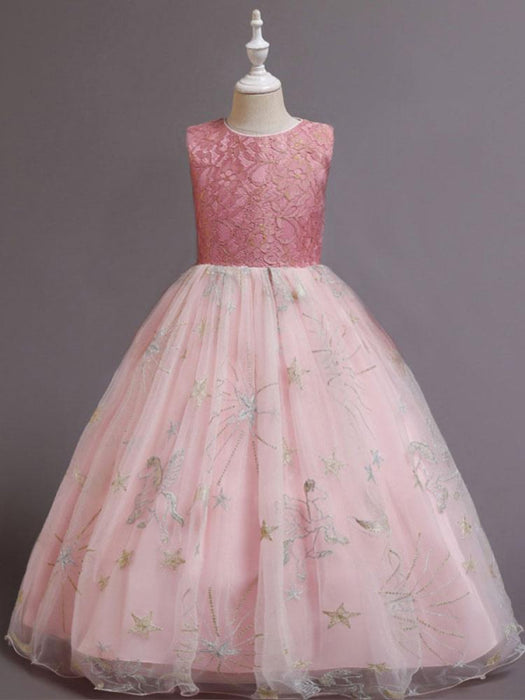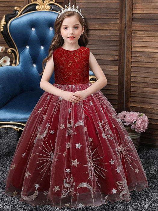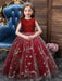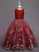 Red A-Line Embroidered Flower Girl Dresses Jewel Neck Sleeveless Ankle-Length Kids Party Dresses