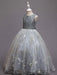 Silhouette A-Line Neckline Jewel Hemline/Train Ankle-Length Back Details Zipper Fabric Tulle, Polyester, Lace, Polyester Cotton Embellishment Embroidered Sleeve Length Sleeveless Fully Lined Yes Season Spring, Summer, Fall, Winter Weight 0.4kg
