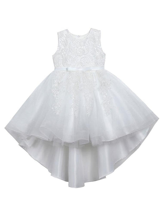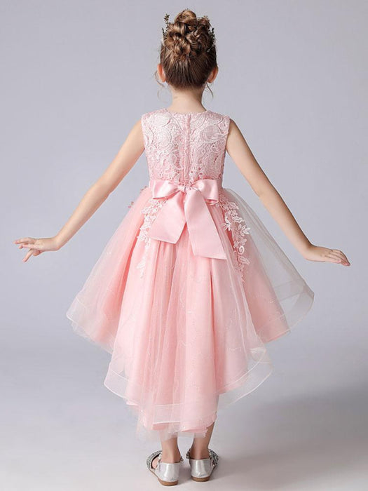 Red Floral Lace A-line Flower Girl Dresses Hi-Lo Jewel Neck Kids Social Party Dresses