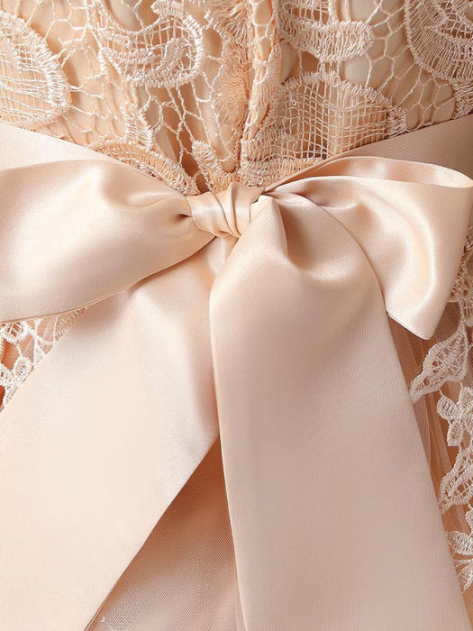 Silhouette A-Line Neckline Jewel Hemline/Train Knee-Length Back Details Zipper Fabric Tulle, Polyester, Lace, Polyester Cotton Embellishment Embroidered, Bows Sleeve Length Sleeveless Fully Lined Yes Season Spring, Summer, Fall, Winter Weight 0.4kg