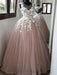 Round Neck Pink Lace Long Prom, Pink Lace Formal, Pink Evening
