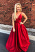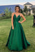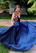 Royal Blue Simple V Neck Satin Prom A Line Spaghetti Straps Long Evening Dress