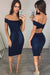 Sexy Off the Shoulder Knee Length Sheath Formal Dark Blue Homecoming Dress