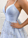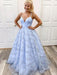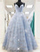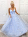 Shiny A Line V Neck Sequins Blue Long Prom, Blue V Neck Long Formal Evening
