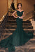 Shiny Off Shoulder Mermaid Dark Green Long Prom, Sparkly Mermaid Green Formal Evening