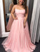 Simple Pink Tulle Long Prom Dresses, Long Pink Formal Graduation Evening Dresses