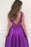 Simple Purple A-line V-neck Backless Ruched Sleeveless Satin Long Prom Dresses