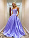 Simple Purple Satin Long Prom Dresses, Long Purple Formal Graduation Evening Dresses