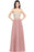 Jewel Neck Appliques Chiffon Prom Dresses Dusty Rose Evening Party Dress