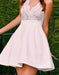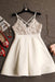 Spaghetti Straps Ivory V-neck Lace Top Satin Homecoming Dresses Mini Prom Dress