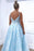 Spaghetti Straps Sleeveless Floor Length Dress Sky Blue Appliques Lace Prom Dresses