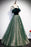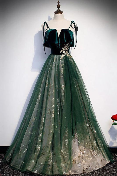 Spaghetti Straps Tulle Green Prom Floor Length Lace Up Formal Dress