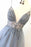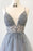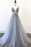 Spaghetti Straps V Neck Tulle Prom Appliques A Line Long Formal Dress with Beads