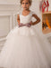 Square Neck Lace Short Sleeves Flower Girl Dresses Cap Sleeves White Ball Gown with Bows