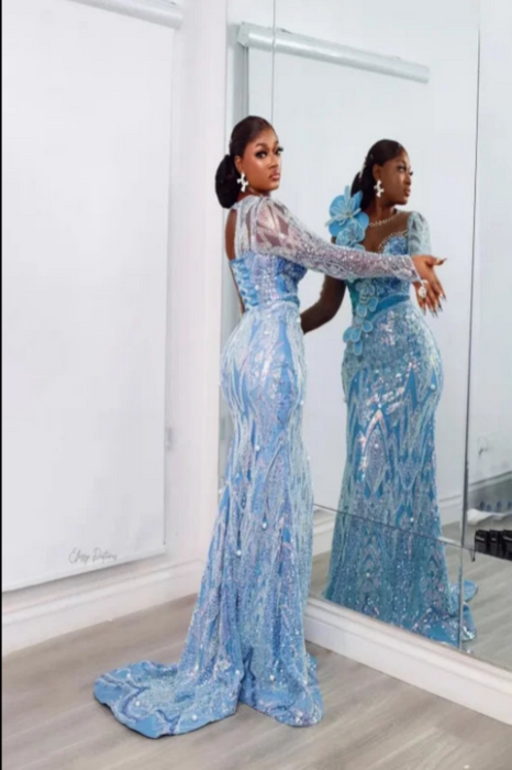 • Dramatic Mermaid Silhouette: Fitted bodice flows into a stunning fishtail hem that creates movement and commands attention