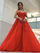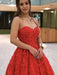 Sweetheart Neck Beaded Red Lace Long Prom Dresses, Strapless Red Formal Evening Dresses, Red Lace Ball Gown