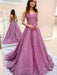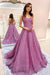 Sweetheart Neck Open Back Purple Tulle Long Prom Dresses, Sparkly Purple Formal Evening Dresses