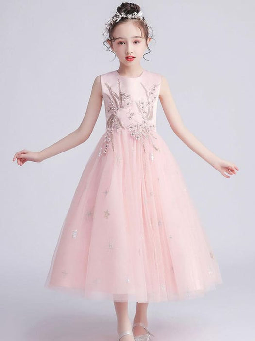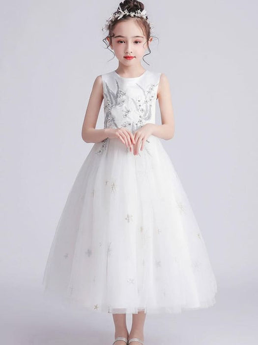 Tulle Sleeveless White Aline Flower Girl Dresses Jewel Neck Princess Kids Party Dresses