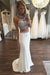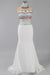Two Piece Halter Sleeveless Ivory Beaded with Sweep Train Prom Dress Long