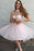 Two Pieces Pink Tulle Short Prom Gowns Homecoming Dresses
