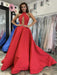 Unique V Neck Red Satin Long Prom Dresses, Long Red Formal Graduation Evening Dresses
