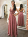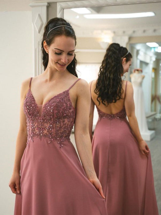 V Neck Backless Dusty Pink Lace Beaded Long Prom Dresses, Dusty Pink Lace Formal Graduation Evening Dresses