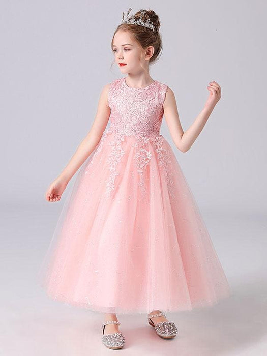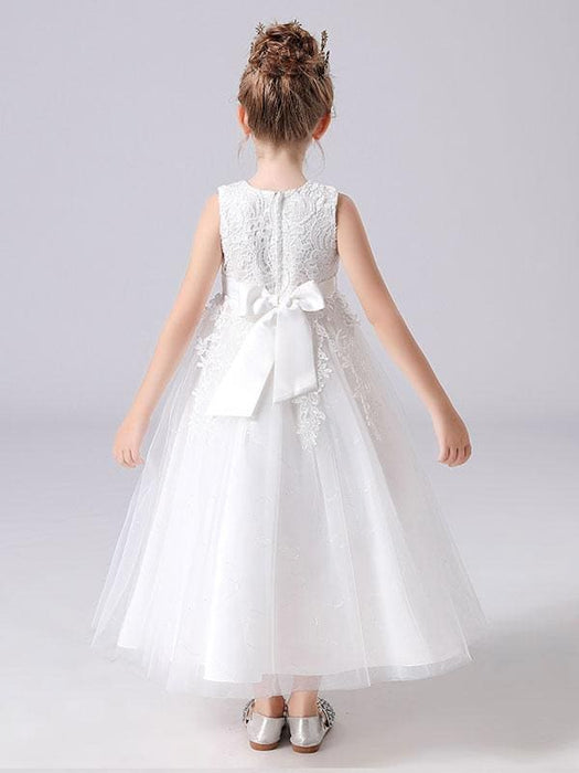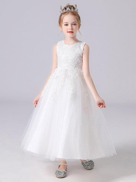 White Jewel Neck Sleeveless Flower Girl Dresses Kids Party Dresses
