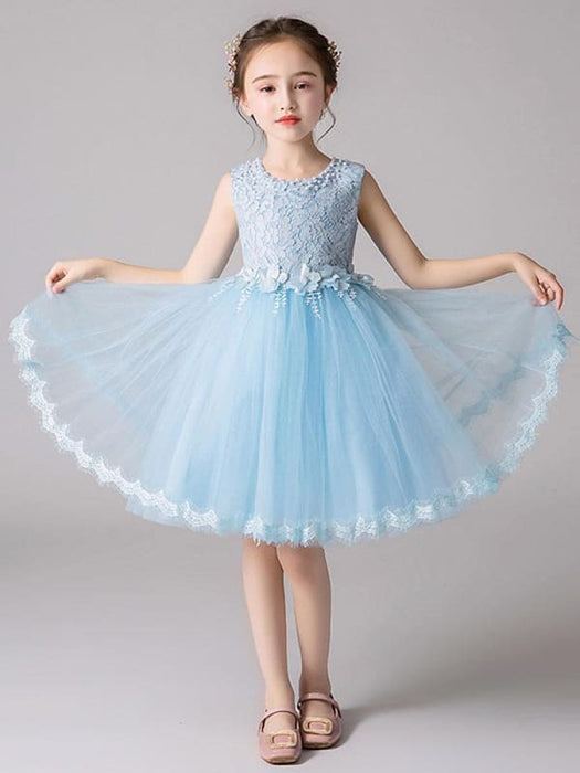 White Lace Tulle Sleeveless Short Formal Flower Girl Dresses Jewel Neck Princess Silhouettes Pageant Dresses