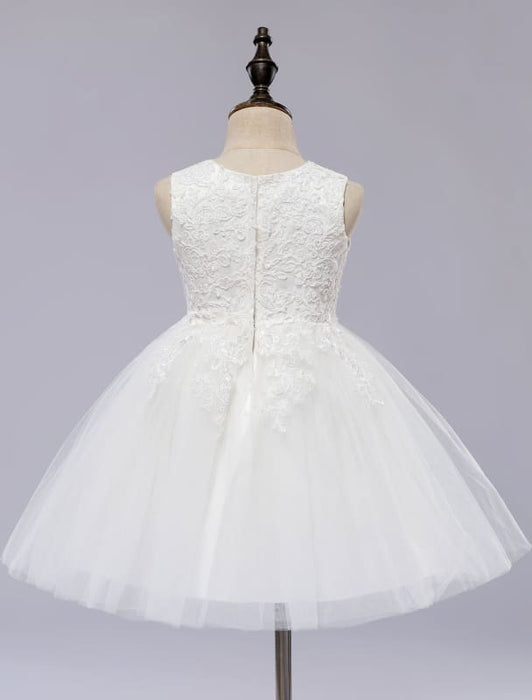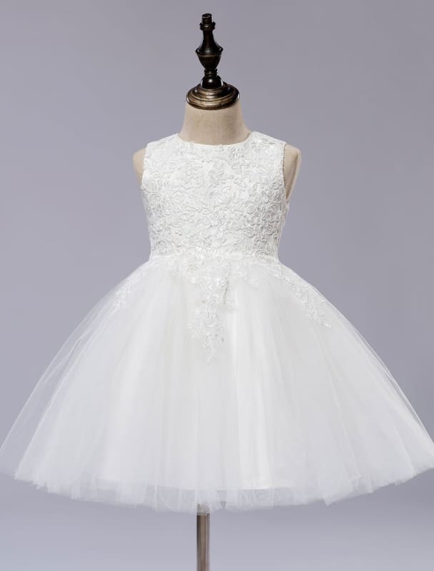 White Sleeveless Ball Gown Flower Girls Dress Short Kids Princess Dress