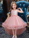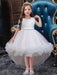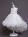 White Sleeveless Flower Girl Dresses With Train A-Line Embroidered Hi-lo Kids Party Dresses