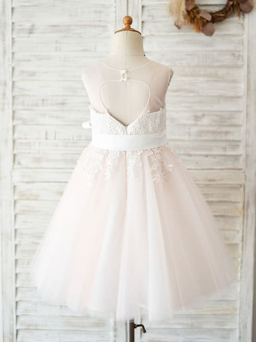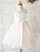 White Sleeveless Lace Sash Formal Tulle Lace Kids Pageant Dresses