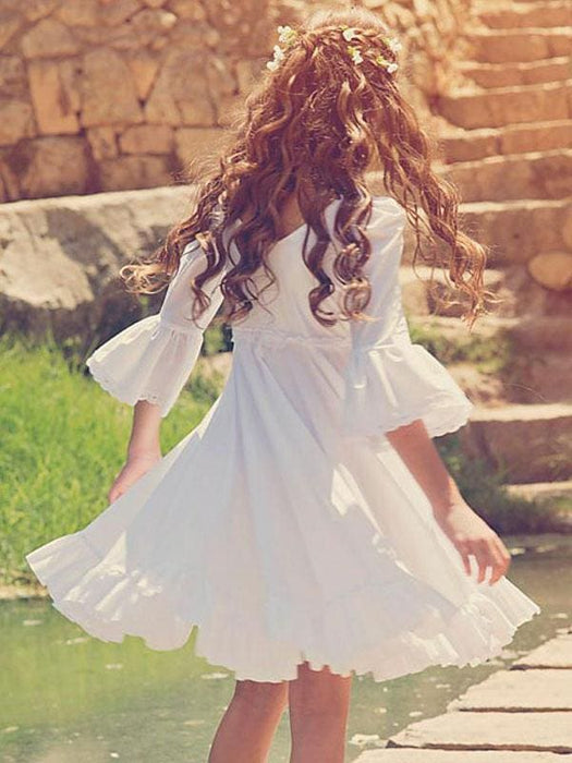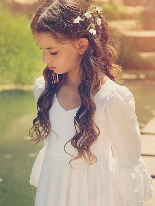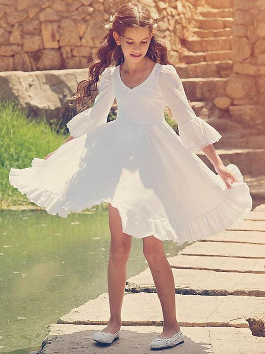 White V-Neck Flower Girl Dresses Long Sleeves Formal Kids Dresses