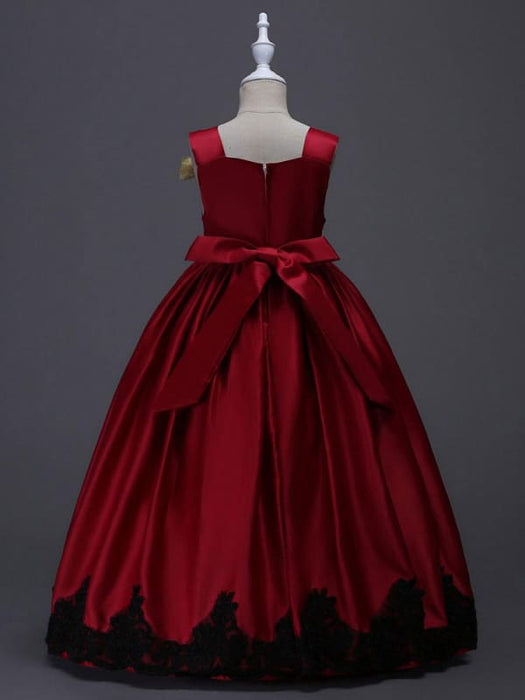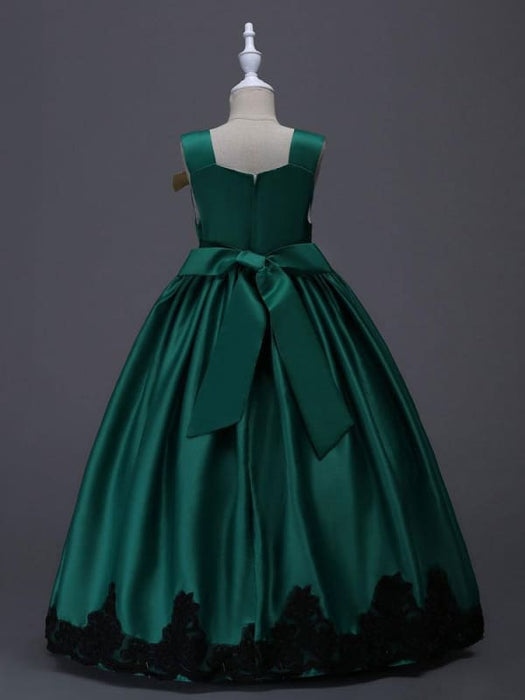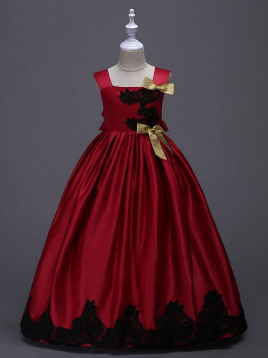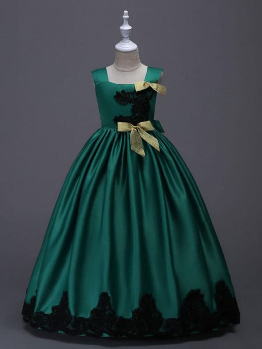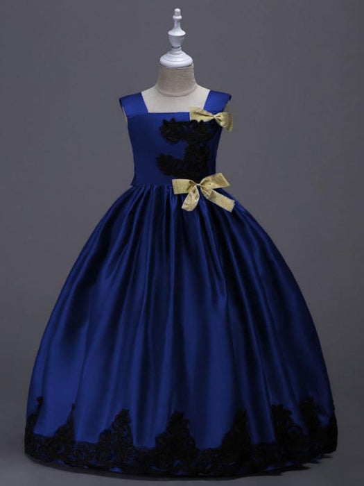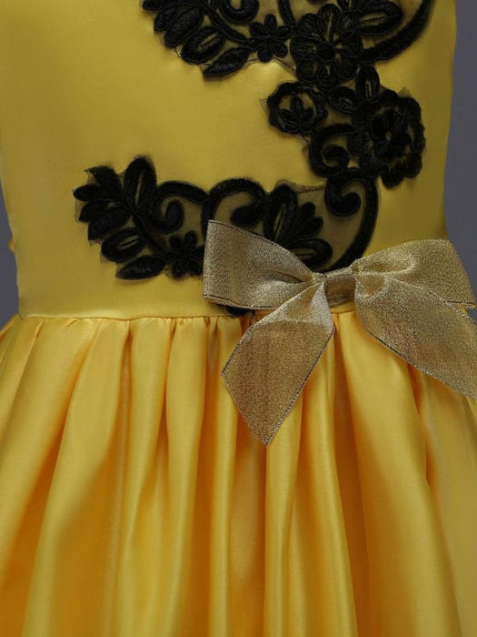 Yellow Princess Flower Girl Dresses Black Lace Applique Kids Pageant Dresses